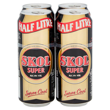 Skol Super 8% Strong Lager Can 500ml - 4 Pack